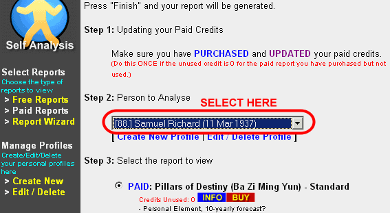 • Click on the Personal Self link, which opens up a Report Wizard on the right frame.